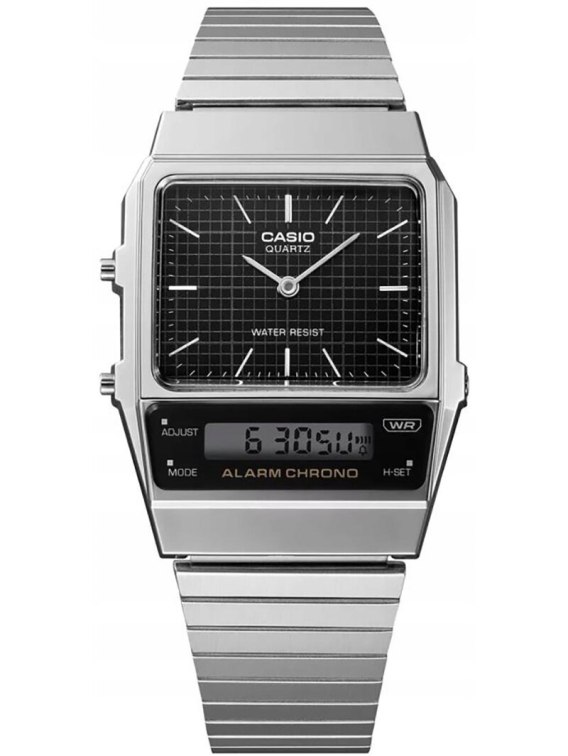 Zegarek Casio Vintage Dual Time AQ-800E-1ADF to wyjątkowy model, który łączy w sobie retro urok z nowoczesną funkcjonalnością. Jego klasyczna, kwadratowa koperta w srebrnym odcieniu i srebrna bransoleta z wysokiej jakości stali szlachetnej nadają mu unikalny charakter, który z pewnością wyróżnia się na tle innych zegarków. Subtelny wygląd z wyświetlaczem LCD i czytelnymi cyframi sprawia, że jest to idealny wybór dla osób, które cenią sobie prostotę, ale też chcą mieć przy sobie praktyczne akcesorium na co dzień.
