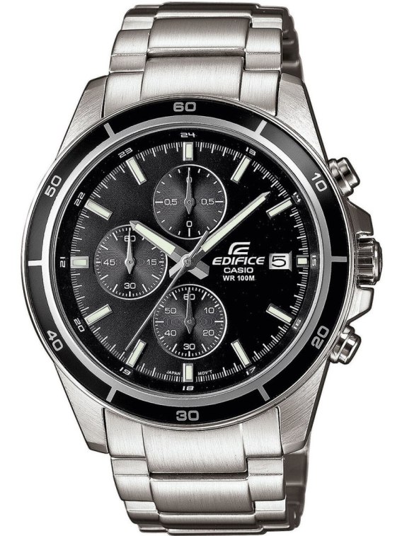 Zegarek Casio Edifice EFR-526D-1AV to dynamiczny czasomierz o sportowym charakterze, wyposażony w precyzyjny chronograf. Dzięki wodoszczelności do 100m, zegarek gwarantuje niezawodną ochronę przed wilgocią. Wskazówki czasomierza są dodatkowo podkreślone fosforyzującą farbą Neobrite, co ułatwia odczyt godziny nawet w zacienionych miejscach. Zegarek ten posiada także datownik umieszczony na godzinie 3, dodając funkcjonalności i stylu do codziennego użytku. Całość wykonana jest ze stali nierdzewnej w kolorze srebrnym.
