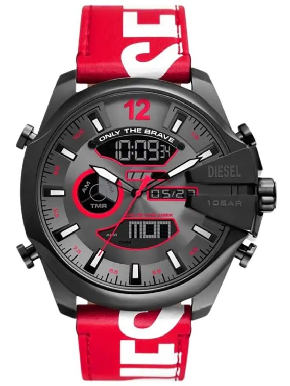 Zegarek męski Diesel MEGA CHIEF MULTIFUNCTION DZ4647 to połączenie sportowego designu i funkcjonalności, stworzone z myślą o dynamicznych mężczyznach. Jego trwały czerwony skórzany pasek z białym logo i stalowa koperta zapewniają wygodę i solidność, a czerwona kolorystyka dodaje nowoczesnego charakteru.