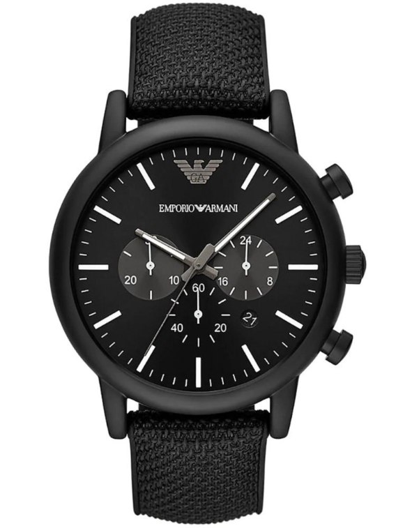 Zegarek Emporio Armani AR11450 Luigi to stylowy męski zegarek na każdą okazję. Na czarnej tarczy zabezpieczonej mineralnym szkłem znajdziemy datownik wskazujący dzień miesiąca oraz subtarcze będące wskazaniami chronografu i czasu dobowego.