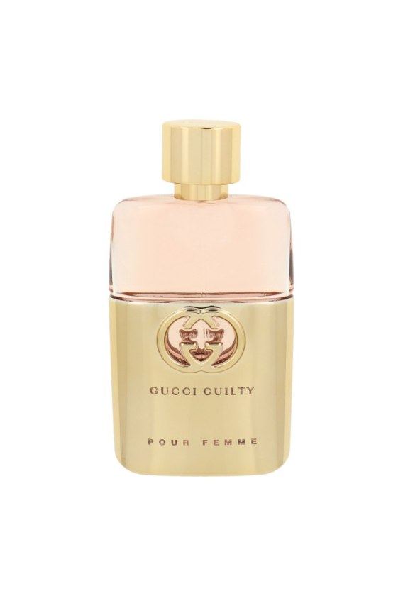 Perfumy Gucci Guilty to orientalno-kwiatowy zapach dla kobiet wydany w 2021 roku. Elegancka i zaskakująca kompozycja, którą można zachwycać codziennie. Słodka mandarynka z pikanterią różowego pieprzu zaprasza nas do serca zapachu, w którym rozpoczyna się prawdziwe bogactwo nut. Niesamowicie aromatyczny jaśmin, podkreślony fioletowym bzem, cudownie komponuje się ze słodyczą brzoskwini, zielonym geranium oraz kwaśnym akcentem czarnej porzeczki i maliny z niuansami róży. Baza wybrzmiewa bardzo pudrowo, pojawia się białe piżmo w towarzystwie ciemnej paczuli z przełamaniem rozgrzewających nut wanilii i bursztynu. Propozycja na każdą porę roku, która podkreśli szyk i piękno każdej kobiety.