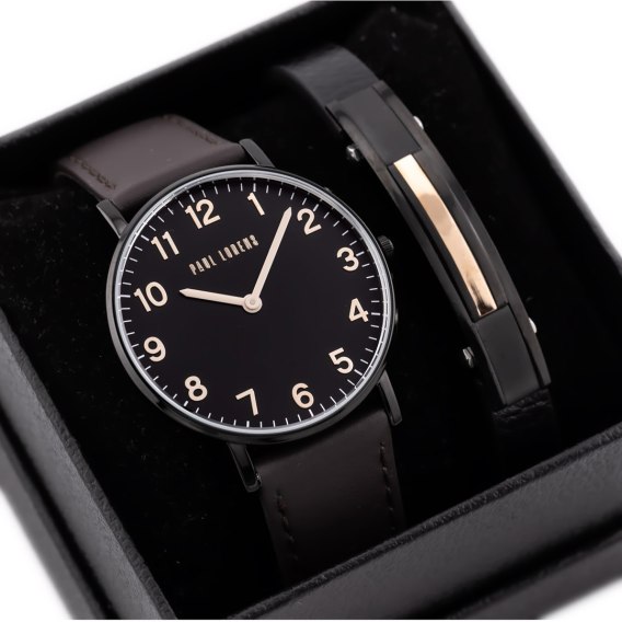 Komplet prezentowy męski, który łączy elegancję z ponadczasowym stylem. Zawiera zegarek marki Paul Lorens, na czarnym pasku, z klasyczną, czarną tarczą ozdobioną beżowym indeksem, co nadaje mu subtelną i wyrafinowaną estetykę. Czarna koperta zegarka doskonale komponuje się z całością, tworząc wyjątkowy design. Zegarek charakteryzuje się wodoszczelnością WR30, co zapewnia jego funkcjonalność i trwałość. Komplet zawiera również skórzaną, brązową bransoletę, która stanowi doskonałe uzupełnienie całości. To idealny wybór na święta - elegancki, męski i wyjątkowy prezent, który zachwyci każdego..