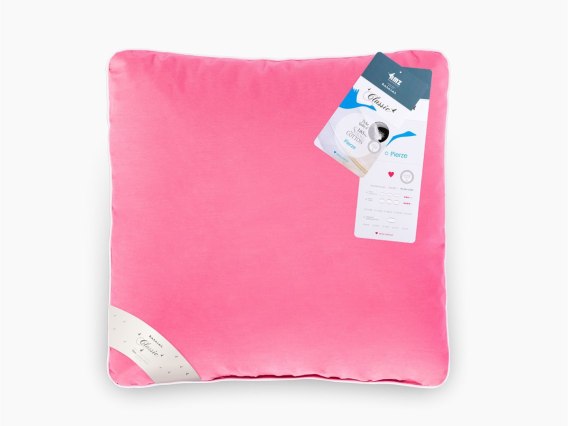 Produkty z linii PIERZE zostały pokryte tkaniną inletową o gramaturze 185 g/m2. Taka grubość tkaniny jest kompromisem pomiędzy trwałością, a komfortem. Gęsty splot oraz wewnętrzna apretura zapobiegają przedostawaniu się wypełnienia na zewnątrz. Kołdry przepikowane zostały na całej swojej powierzchni, uniemożliwiając przemieszczanie się wypełnienia pomiędzy komorami. Wykończenie kołder oraz poduszek bizą dodatkowo uszczelnia wsypy oraz nadaje elegancji. Wyroby dostępne są w kolorach: ecru oraz różowym. Użyte do wypełnienia kołder i poduszek pierze gęsie nie zostało w żaden sposób mechanicznie zmiękczane. Ściśle wyselekcjonowane miękkie piórka nadają wyrobom odpowiedniej sprężystości i lekkości. Wyroby zachowują swoje pierwotne walory użytkowe przez długi okres użytkowania. Wypełnienie jest bezpieczne dla użytkownika i spełnia normy europejskie. Przeszło cały proces technologiczny od prania w odpowiednich detergentach poprzez suszenie w wysokiej temperaturze oraz dodatkowe odpylanie. Kołdry i poduszki wyprodukowano z materiałów posiadających certyfikat.
