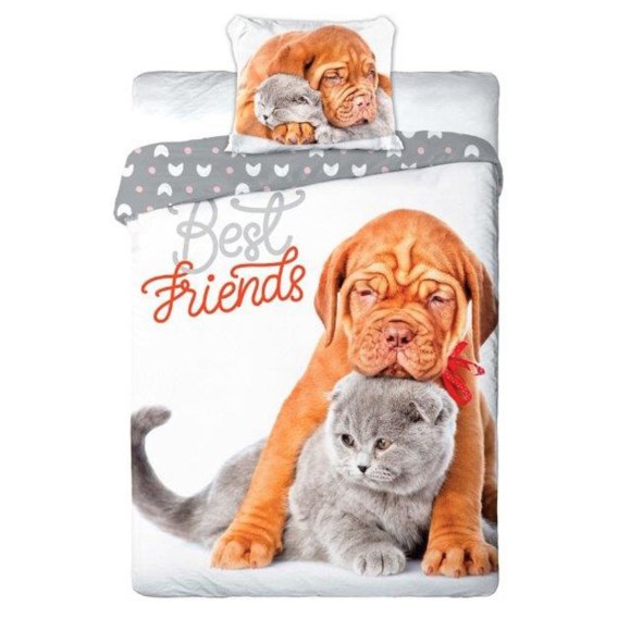 Pościel bawełna 140x200+1p70x90 Kotek i piesek 013