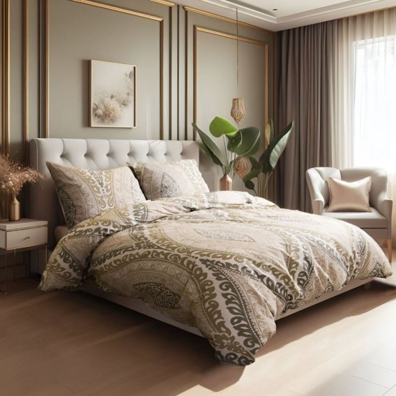 Komplety pościeli wykonane są w 100% z najwyższej jakości bawełny. Zastosowany jest splot wyróżniający się dużą gęstością oraz wytrzymałością. Delikatna i miękka w dotyku tkanina w połączeniu z ciekawymi rotacyjnymi wzorami zapewnia duży komfort podczas snu. Komplety pościeli wyprodukowano z tkanin posiadających certyfikat.