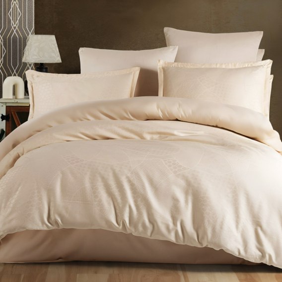 Komplety pościeli z kolekcji JACQUARD wykonane są z wysokiej jakości tkaniny bawełnianej o splocie satynowym która jest tkana techniką żakardową z przędzy NE 40/1 i z gęstością 200TC. Dzięki tej technice można tworzyć na tkanym materiale wielowymiarowe wzory o jedwabistym połysku. Tkanina żakardowa jest bardzo gładka, miękka i przyjemna w dotyku. Przędza przed tkaniem jest barwiona, dzięki czemu ten rodzaj pościeli jest bardziej naturalny, miękki i jedwabisty. Komplety pościeli uszyte są w bardzo elegancki sposób. Poszewki posiadają zakładkę hotelową oraz 5cm listwę, a poszwa zapinana jest na zamek błyskawiczny. Całość pakowana jest do ekskluzywnego pudełka co sprawia iż może być luksusowym prezentem. Komplety pościeli wyprodukowano z tkanin posiadających certyfikat OEKO-TEX.