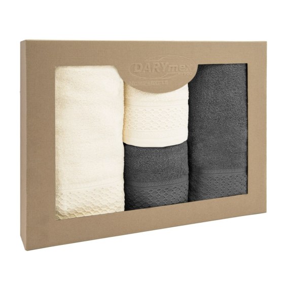 Ręcznik D Bawełna 100% Solano Ecru + Ciemny Popiel (P) 2x50x90+2x70x140 kpl.