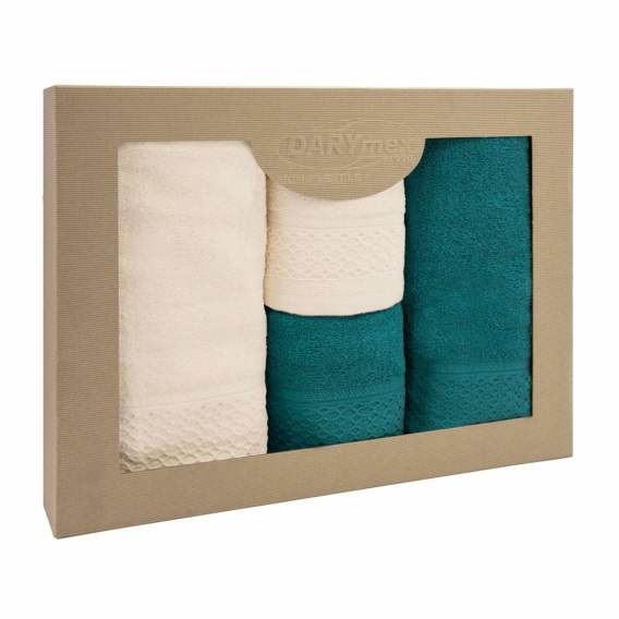 Ręcznik D Bawełna 100% Solano Ecru + Ciemny Turkus (P) 2x50x90+2x70x140 kpl.