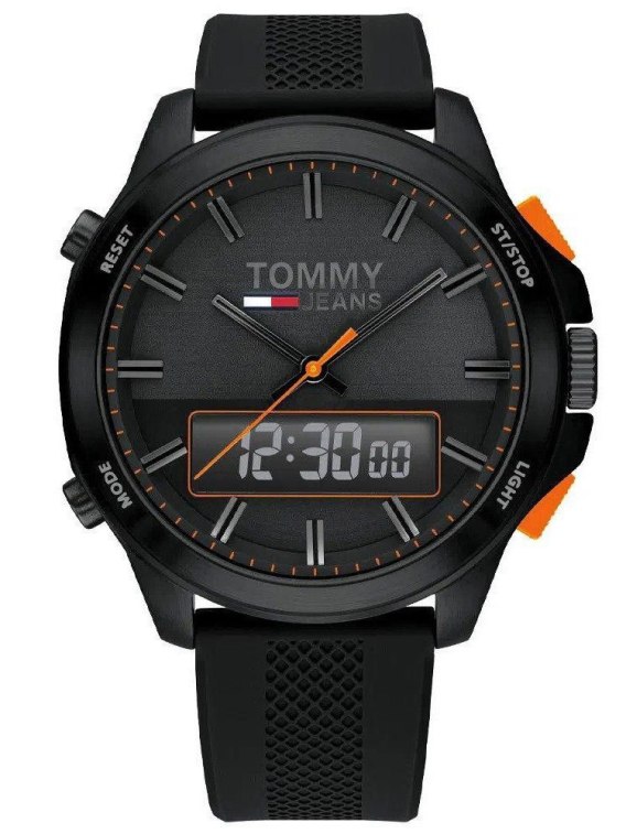 Zegarek męski TOMMY HILFIGER 1791763 - analogowo-cyfrowy model zegarka będzie doskonałym wyborem do codziennych oraz sportowych stylizacji. Nowoczesny design daje szerokie pole manewru z kolorystyką i charakterem strojów, do których zostanie dobrany. Ten model posiada stylową kopertę w czarnym kolorze, do której dopasowany został czarny pasek. Tarcza w kolorze czarnym wykonana wysokiej klasy stali szlachetnej, odpornej na korozję.