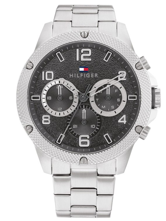 Zegarek Tommy Hilfiger 1792029 to połączenie męskiej elegancji i sportowego luzu. Duża, szara tarcza podkreślona stalową kopertą i komfortową bransoletą tworzą nowoczesną i uniwersalną kompozycję. Kwarcowy mechanizm oraz wodoszczelność 5 ATM sprawiają, że ten model sprawdzi się zarówno na co dzień, jak i podczas aktywności. Minimalistyczny styl i solidne wykonanie czynią go świetnym wyborem dla mężczyzn szukających zegarka łączącego design z funkcjonalnością.